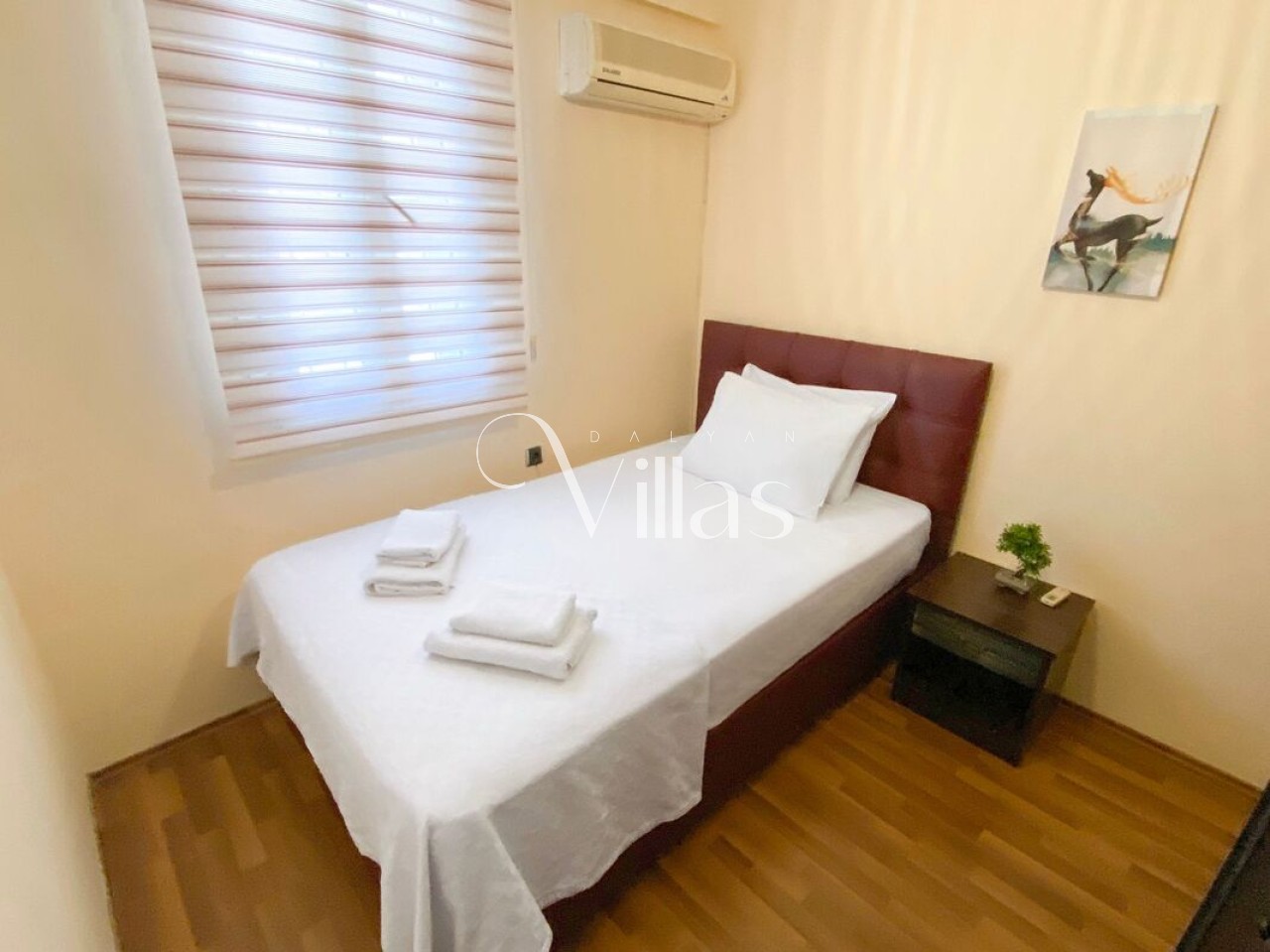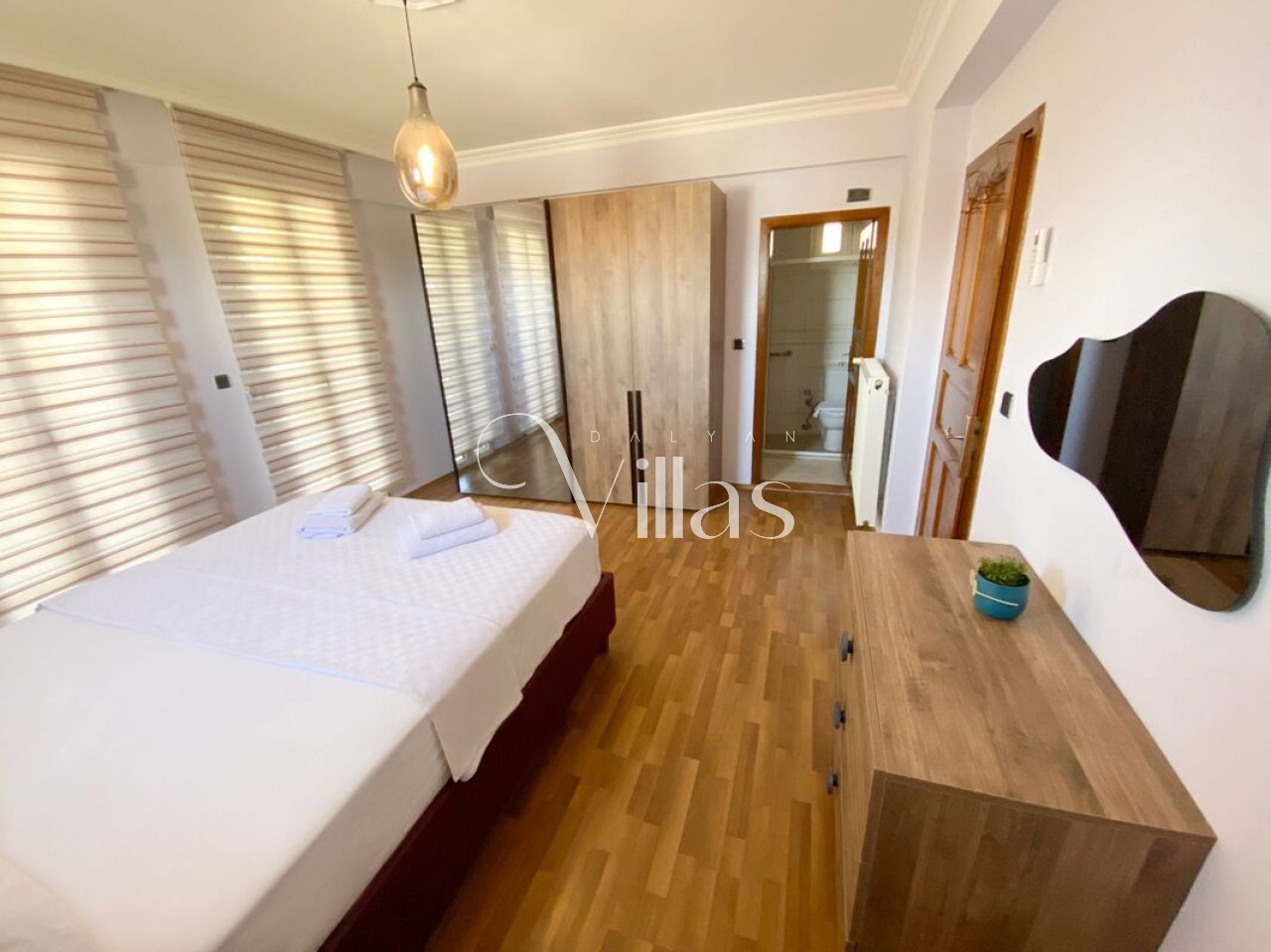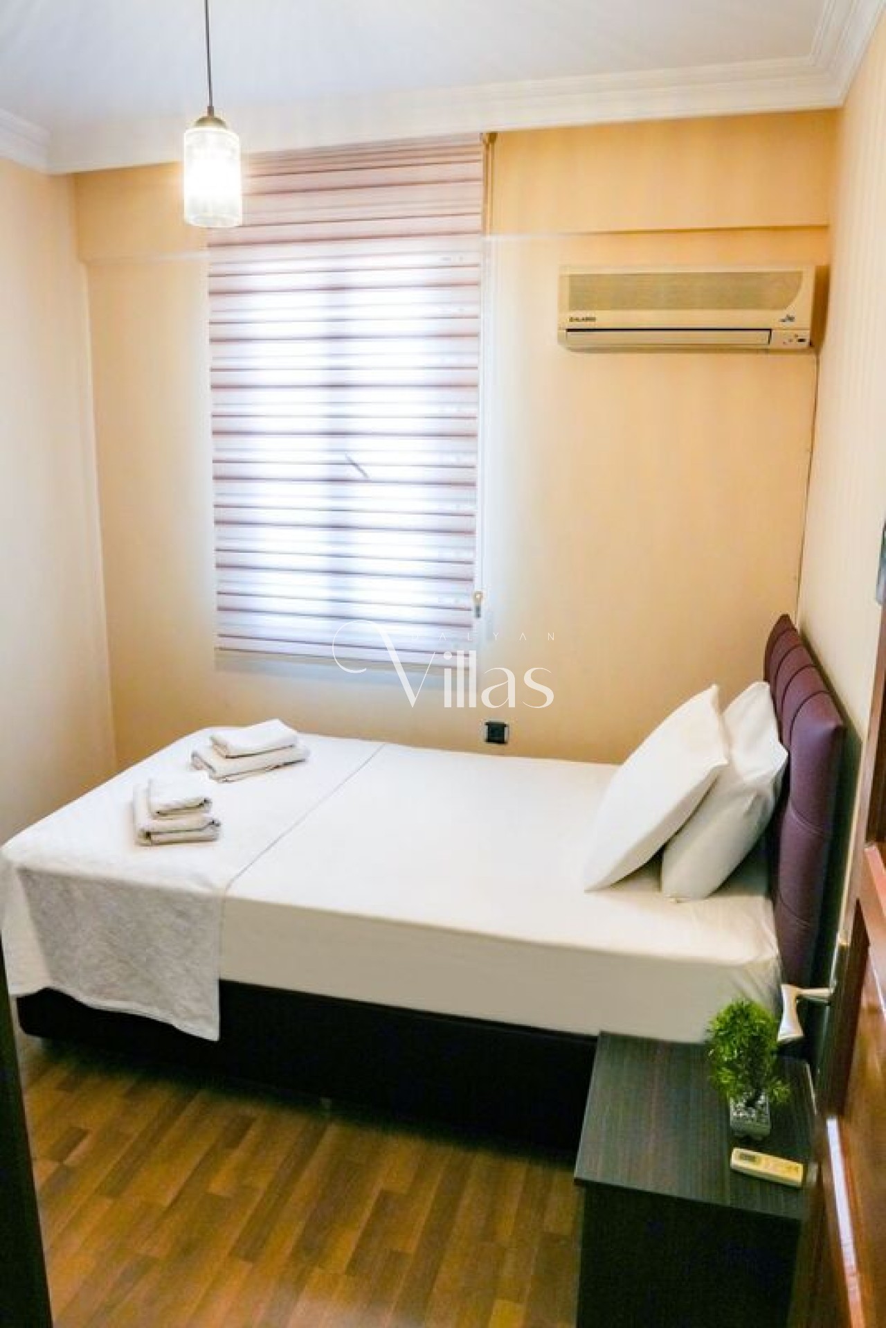 Bedroom 2 (Master): Double bed, air conditioning, wardrobe, and en-suite bathroom.