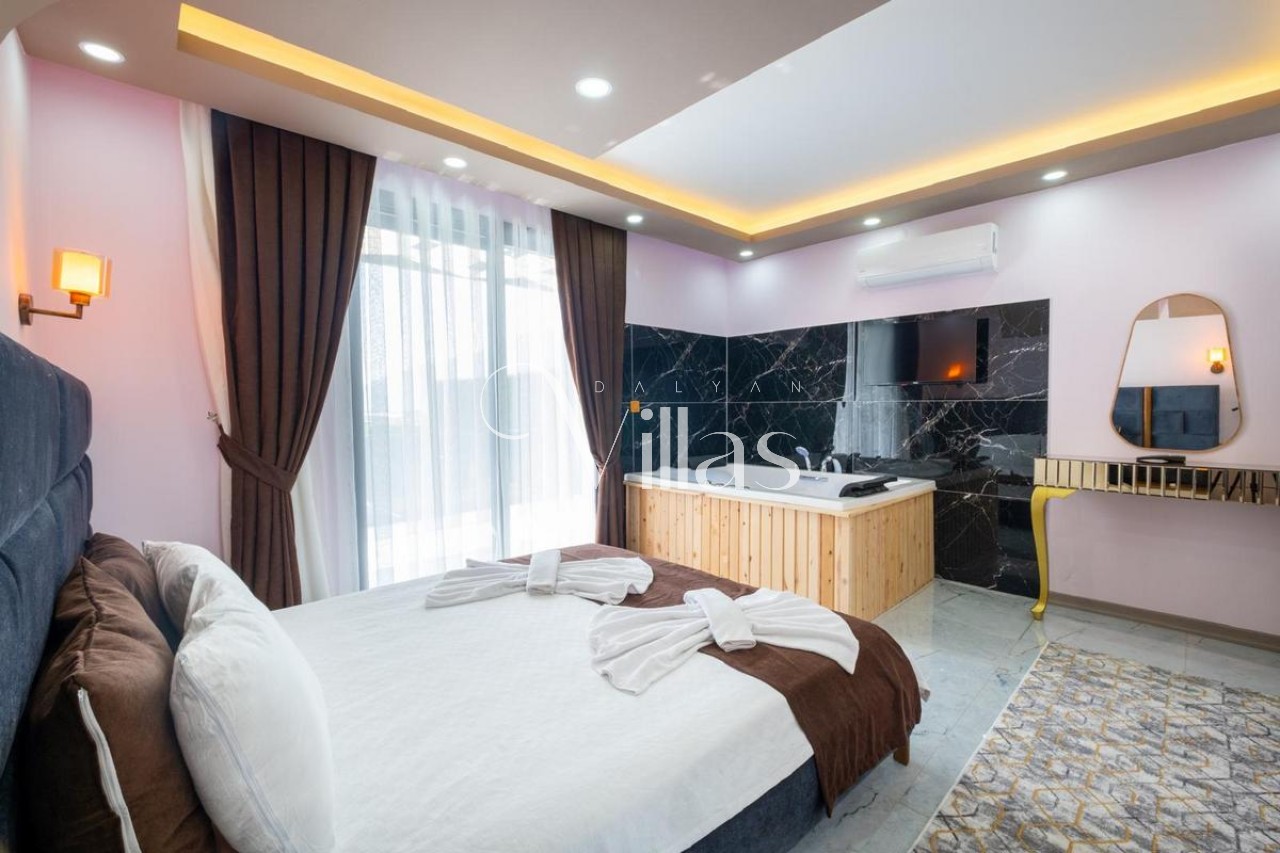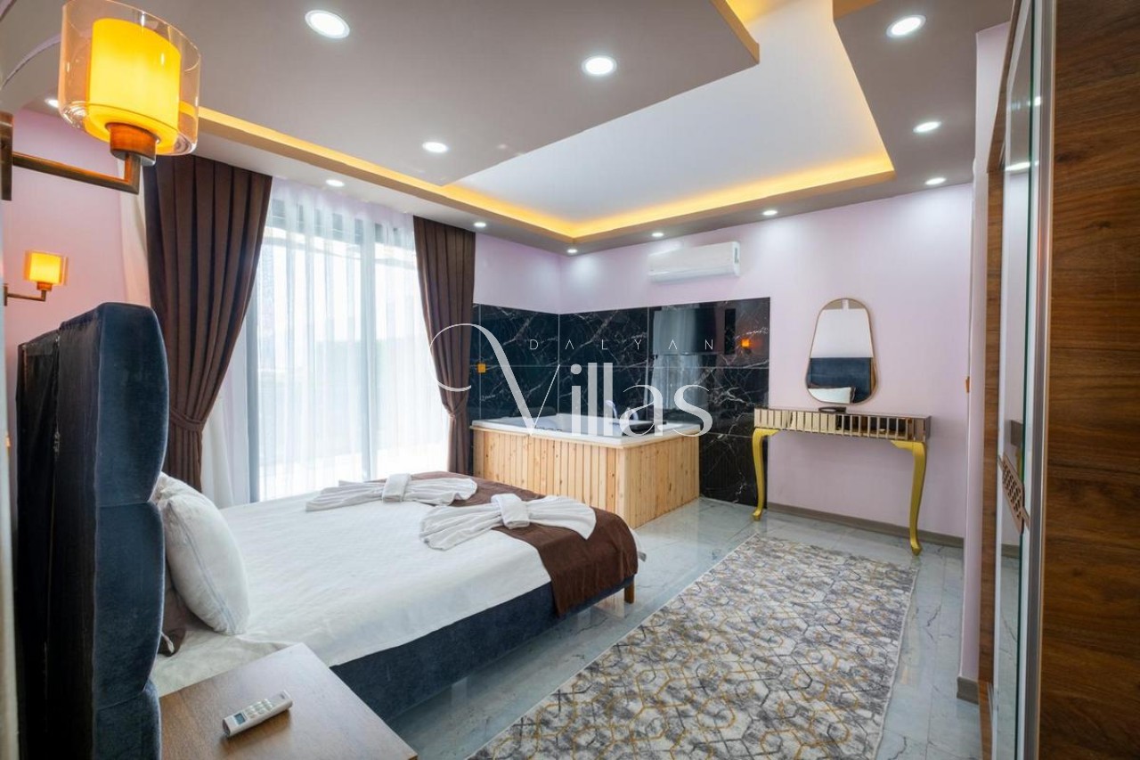 The master bedroom of our villa features a double bed and a jacuzzi. The other bedroom of our villa has 2 single beds. These spaces, where privacy and comfort are prioritized, provide an ideal usage area for our nuclear families and groups of friends. 🛌🛁✨