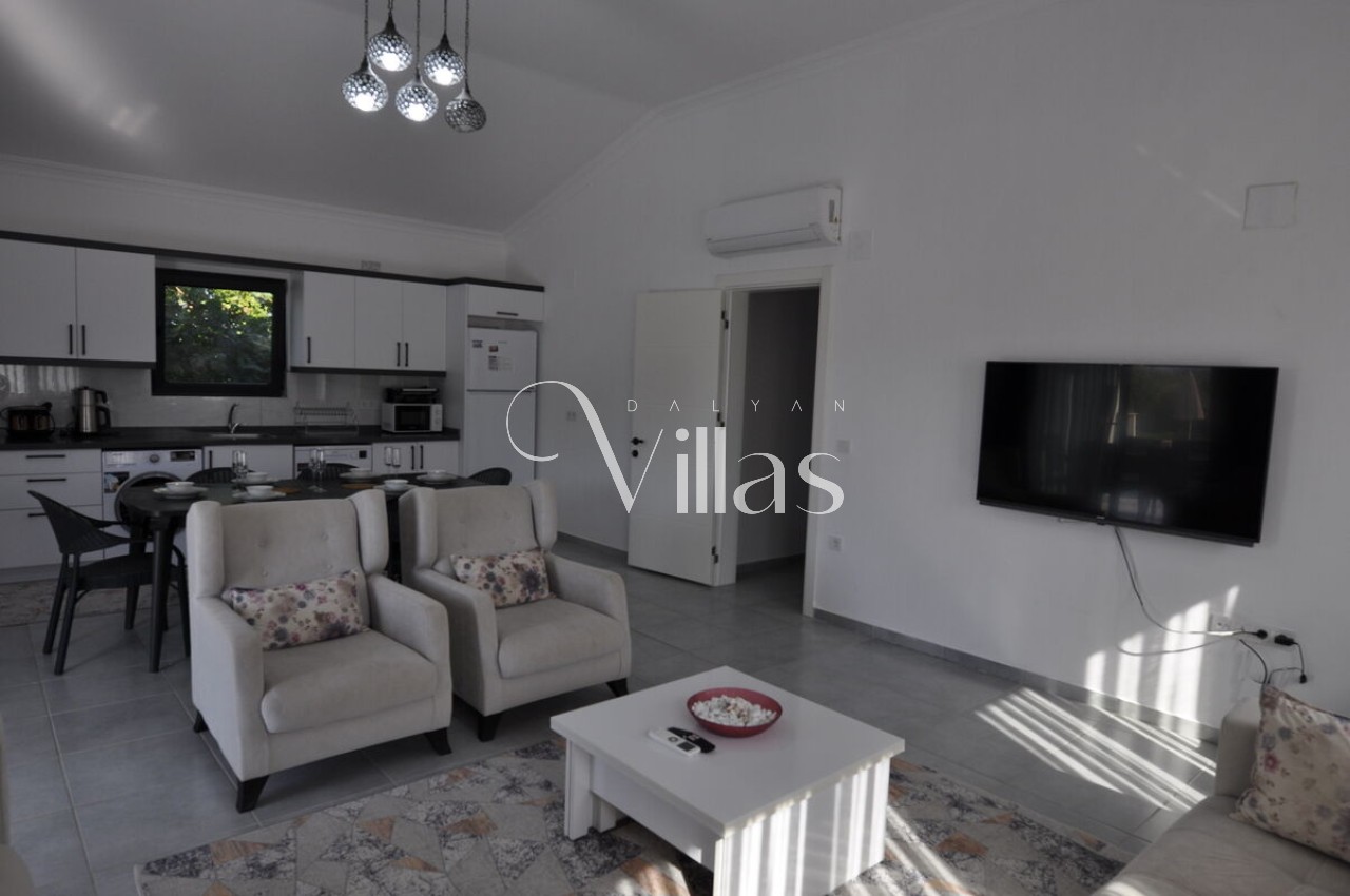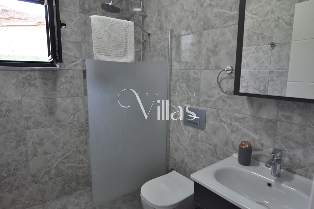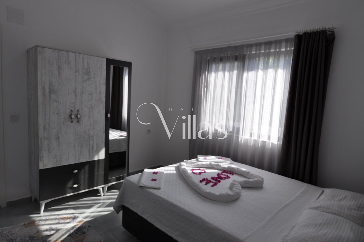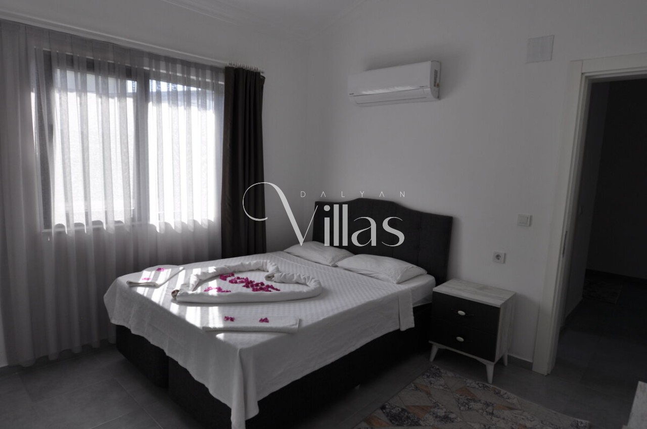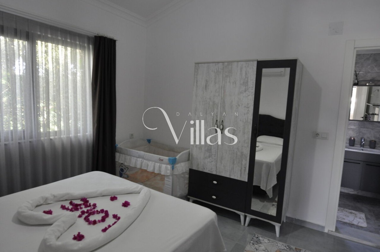 Maksimum 6 kişinin konaklayabileceği Villamızın içerisinde üç adet yatak odası ve üç adet WC-Duş bulunmaktadır. Birinci yatak odasında çift kişilik yatak, TV klima ve WC-Duş bulunmaktadır. İkinci yatak odasında çift kişilik yatak, klima ve WC-Duş, TV bulunmaktadır.Üçüncü yatak odasında tek kişilik iki yatak, klima ve TV bulunmaktadır.Koridor da ortak ebeveyn banyosu bulunmaktadır.Ortak alanda amerikan mutfak, klima,TV ve Konforlu oturma grubu bulunmaktadır. Villamızın geniş bir çim alanı bulunmaktadır .