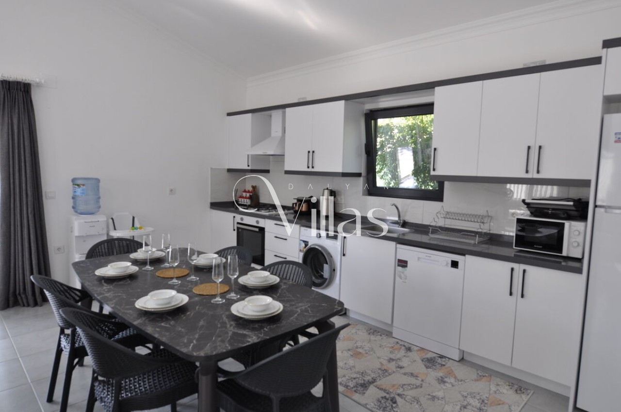 Dalyan merkeze sadece 1,5km mesafede bulunan villamızın içi oldukça şık ve konforunuza uygun olarak döşenmiş olup, geniş ve yemyeşil bir bahçeye sahip olması ve bu alanda bulunan kamelya alanı dolayısıyla hem çocuklu aileler hem de kalabalık gruplar için oldukça uygundur.