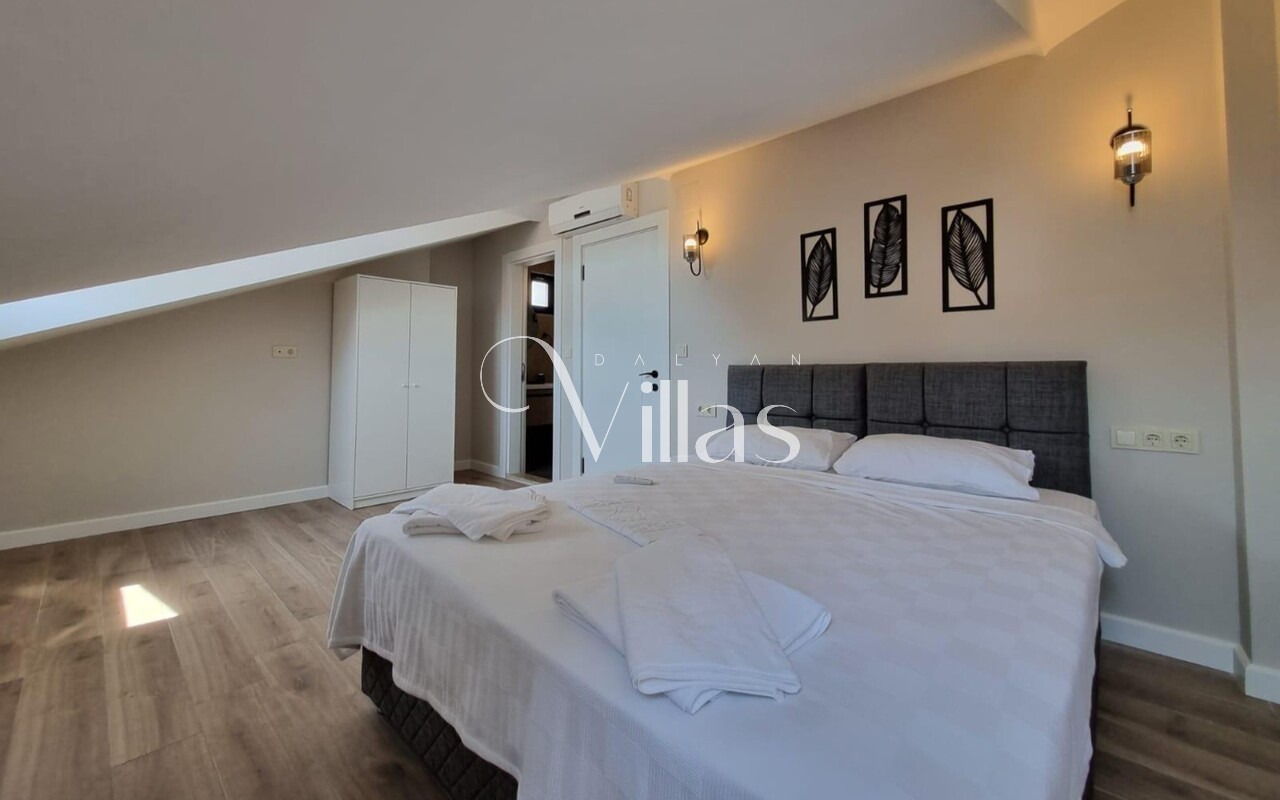 Çatı Katı: İkisi çift kişilik, biri iki tek kişilik yataktan oluşan toplam 3 adet ebeveyn banyolu ve klimalı yatak odası.