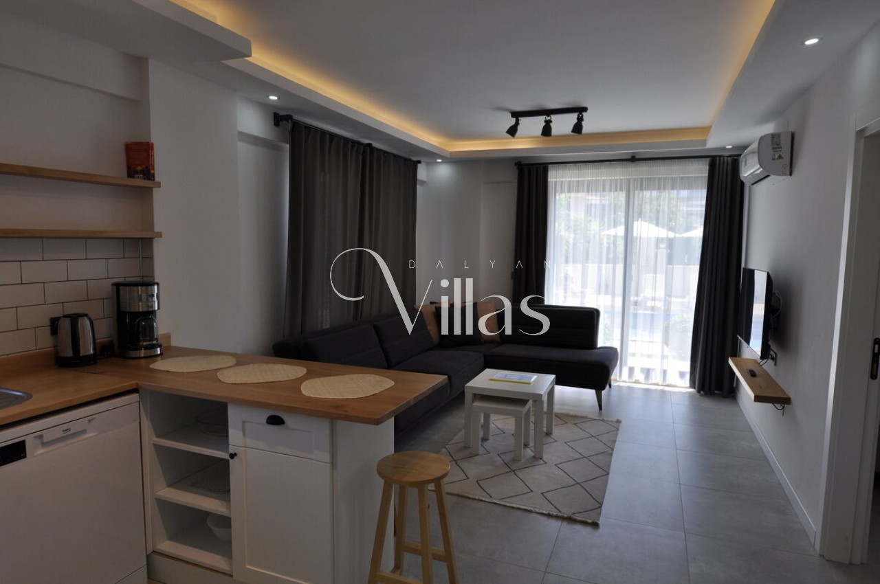 Her biri ayrı girişli ve tam donanımlı olan bu daireler, apart konseptiyle kiralanmakta olup ortak bahçe ve ortak kullanım havuz alanına sahiptir.