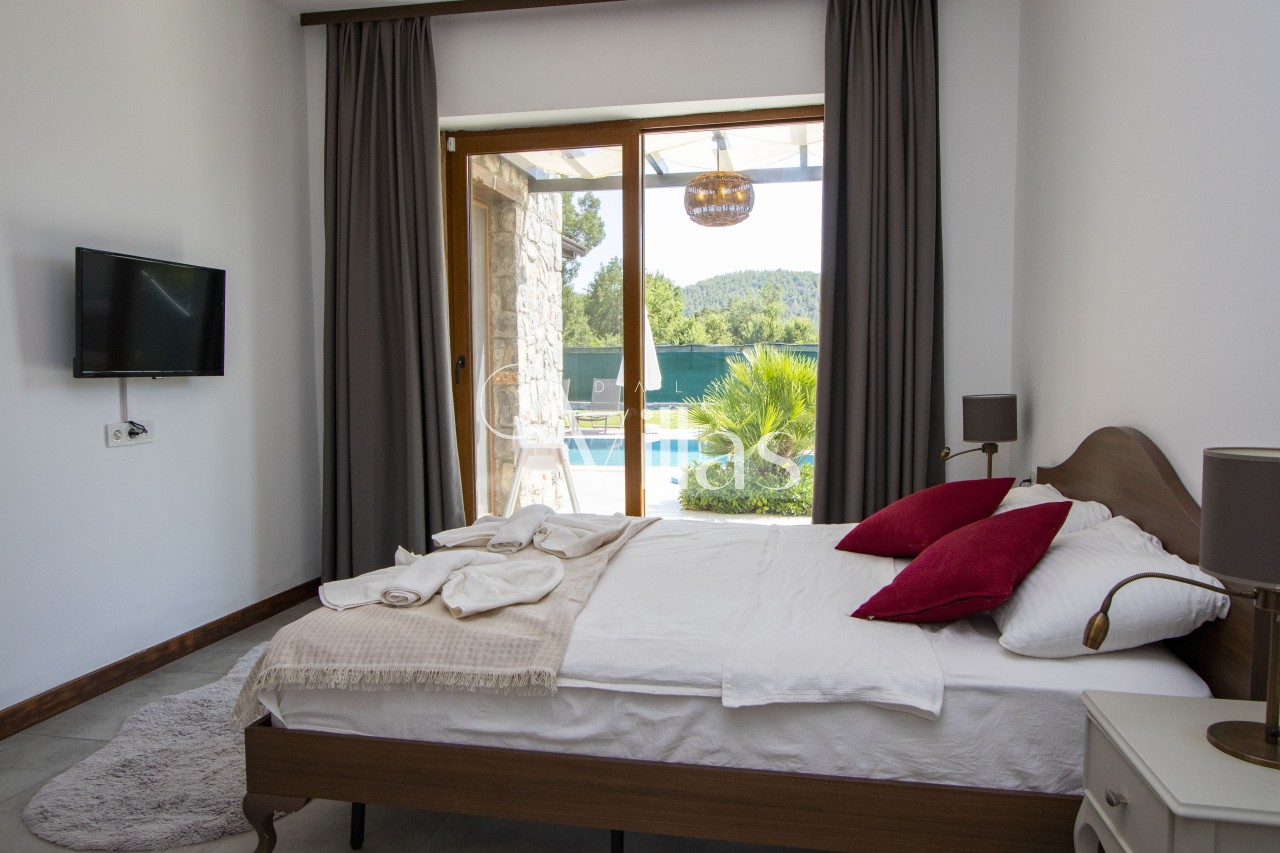 Fethiye Kayaköy’ün büyüleyici doğasında konumlanan VİLLA ABELIA, 2 yatak odası ile 4 kişiye kadar konaklama imkânı sunan, taş ve ahşap mimarinin harmanlandığı özel bir villadır. Hem muhafazakâr aileler hem de balayı çiftleri için mahremiyet ve konforu bir arada sunar. ✨