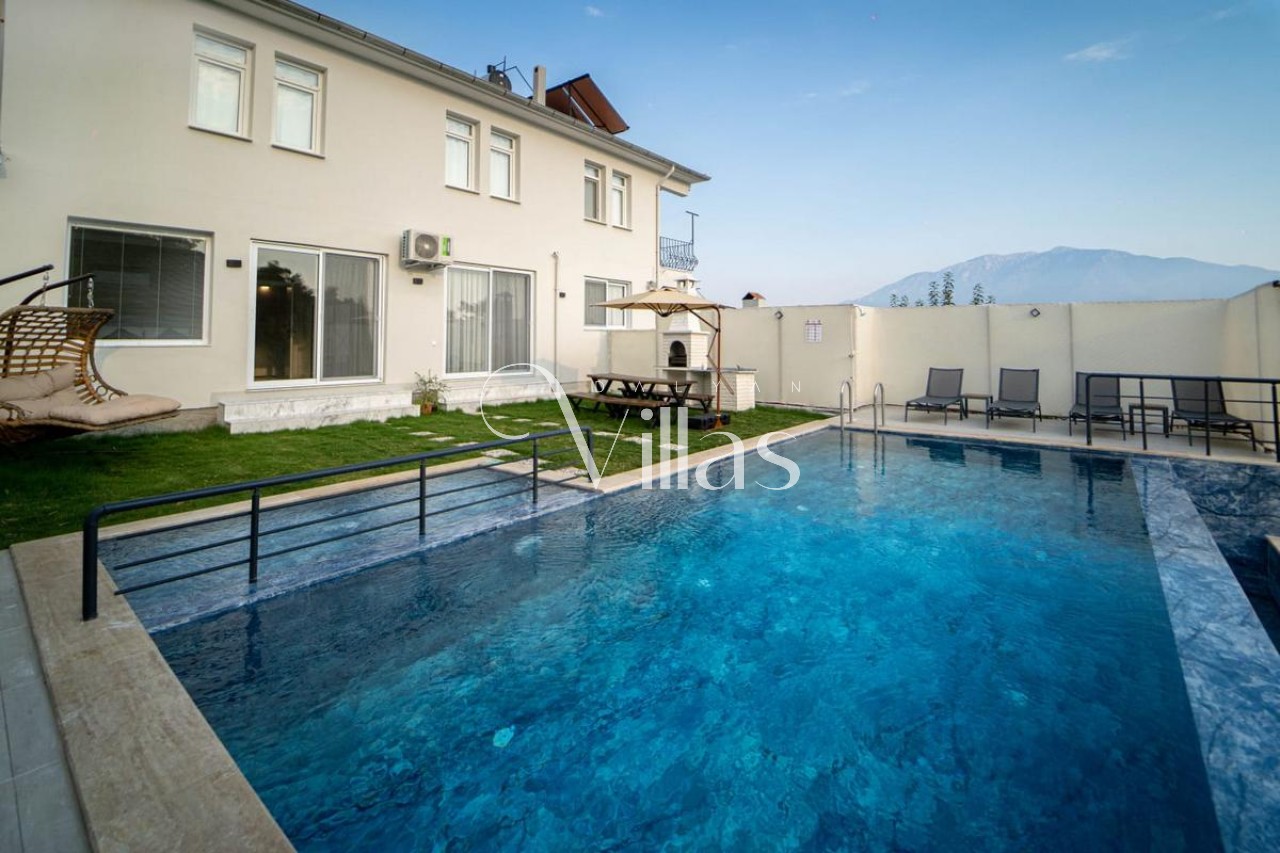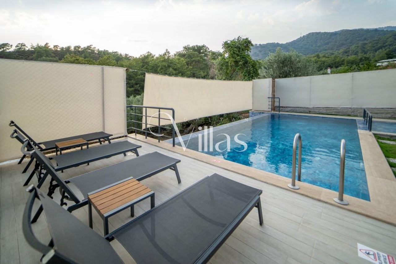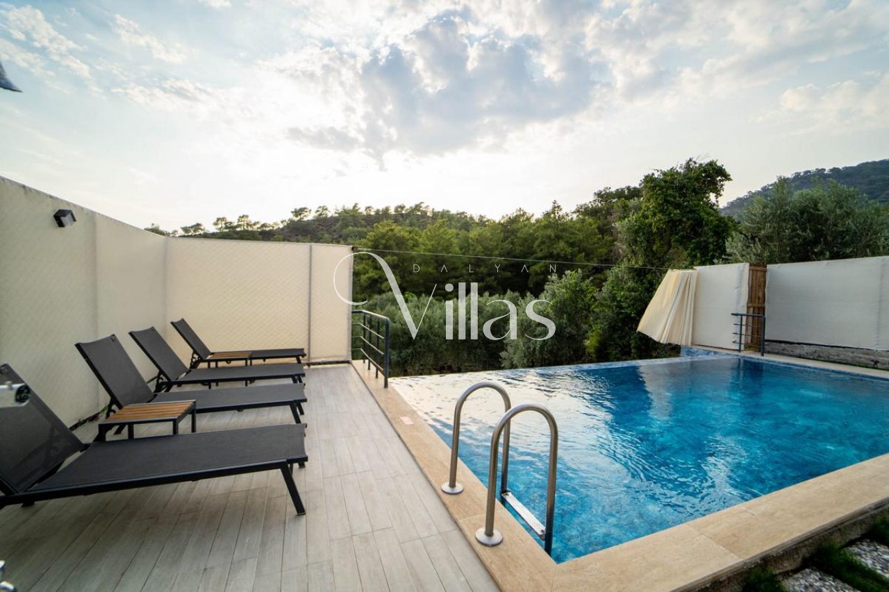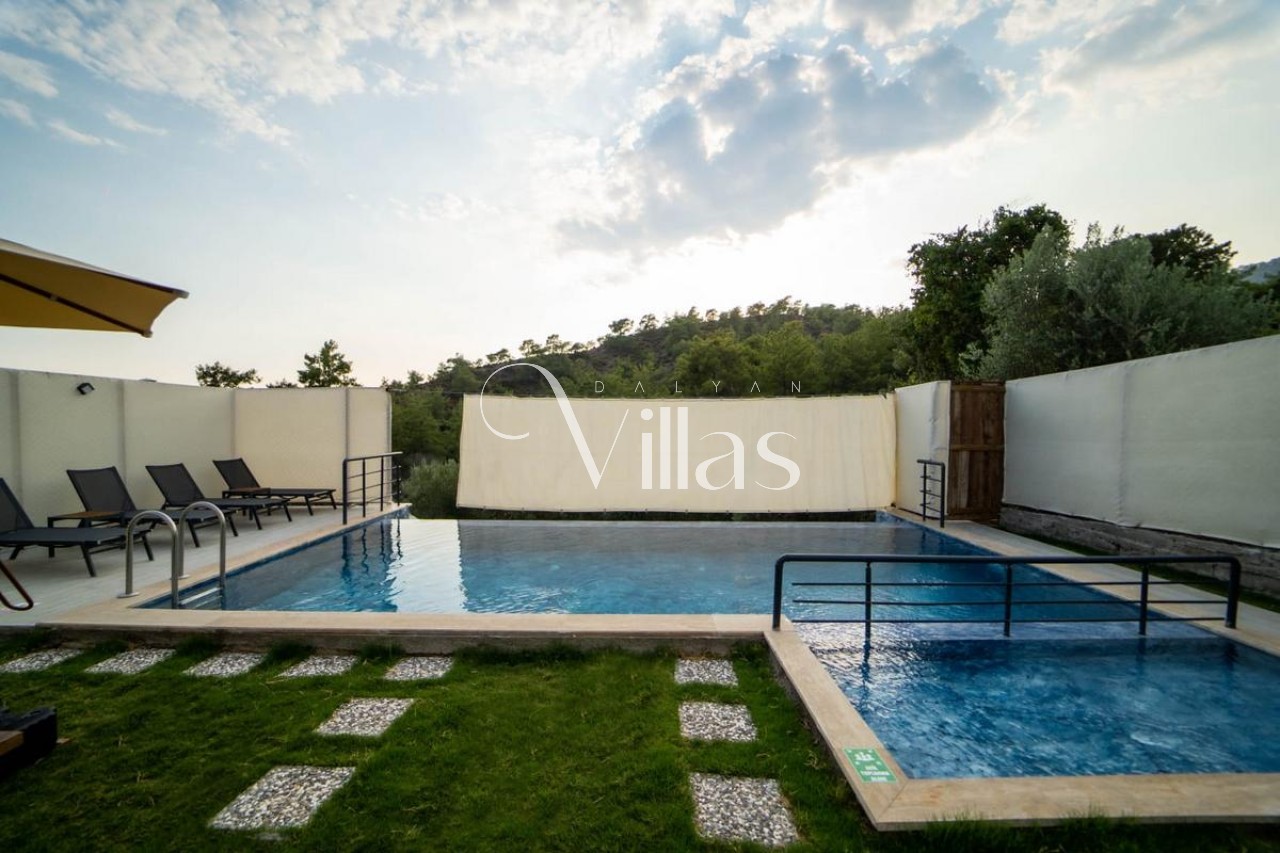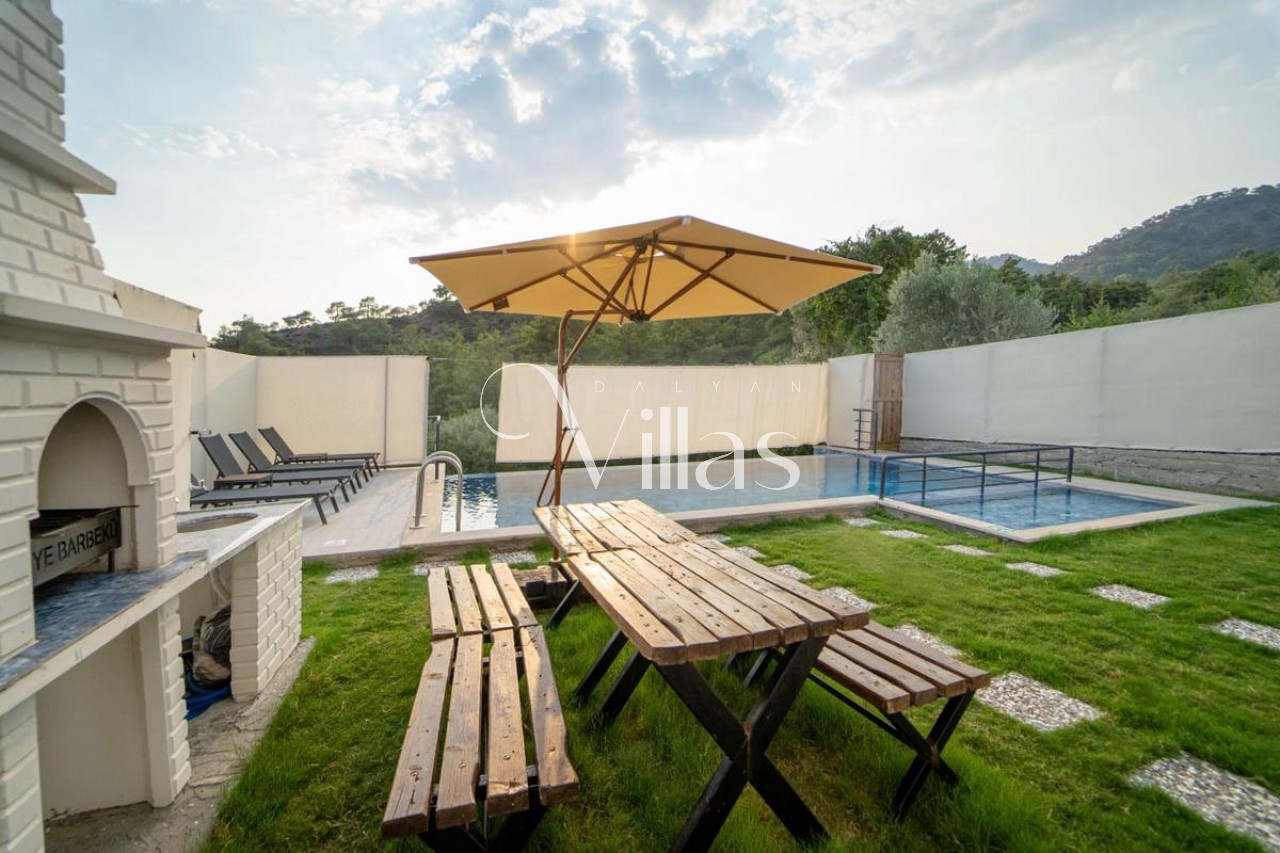 Bahçe ve havuz alanı ile sadece size özel bir tatil vadeden villamız; bahçe ve havuz terasında şezlong takımı, oturma grubu, barbekü alanı ve salıncak barındırmaktadır. Denize, koylara ve plaja yakın tatil arayan misafirlerimiz için unutulmaz bir fırsat sunan villamız, dışarıdan görünmeyecek şekilde tasarlanan havuz alanıyla tam mahremiyet sağlar. 🔒☀️🍹