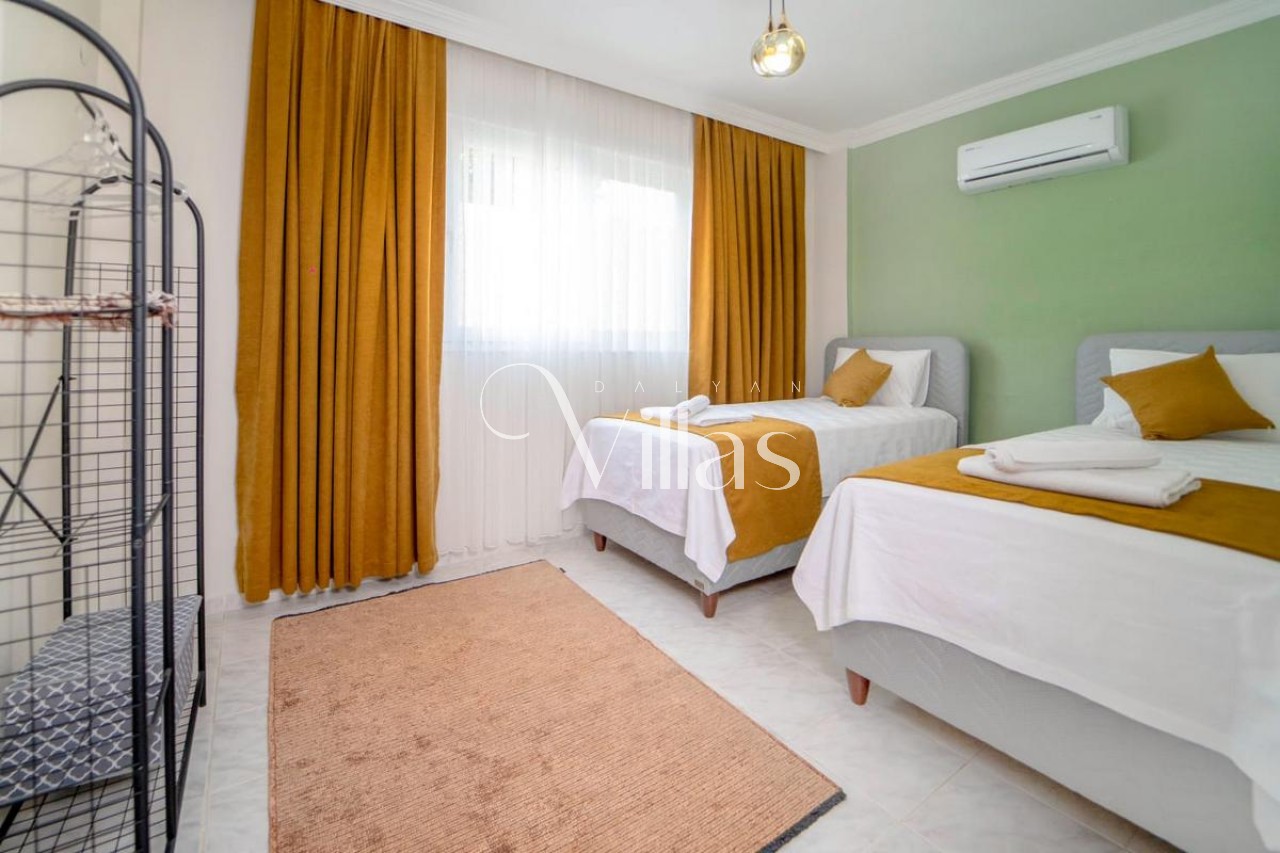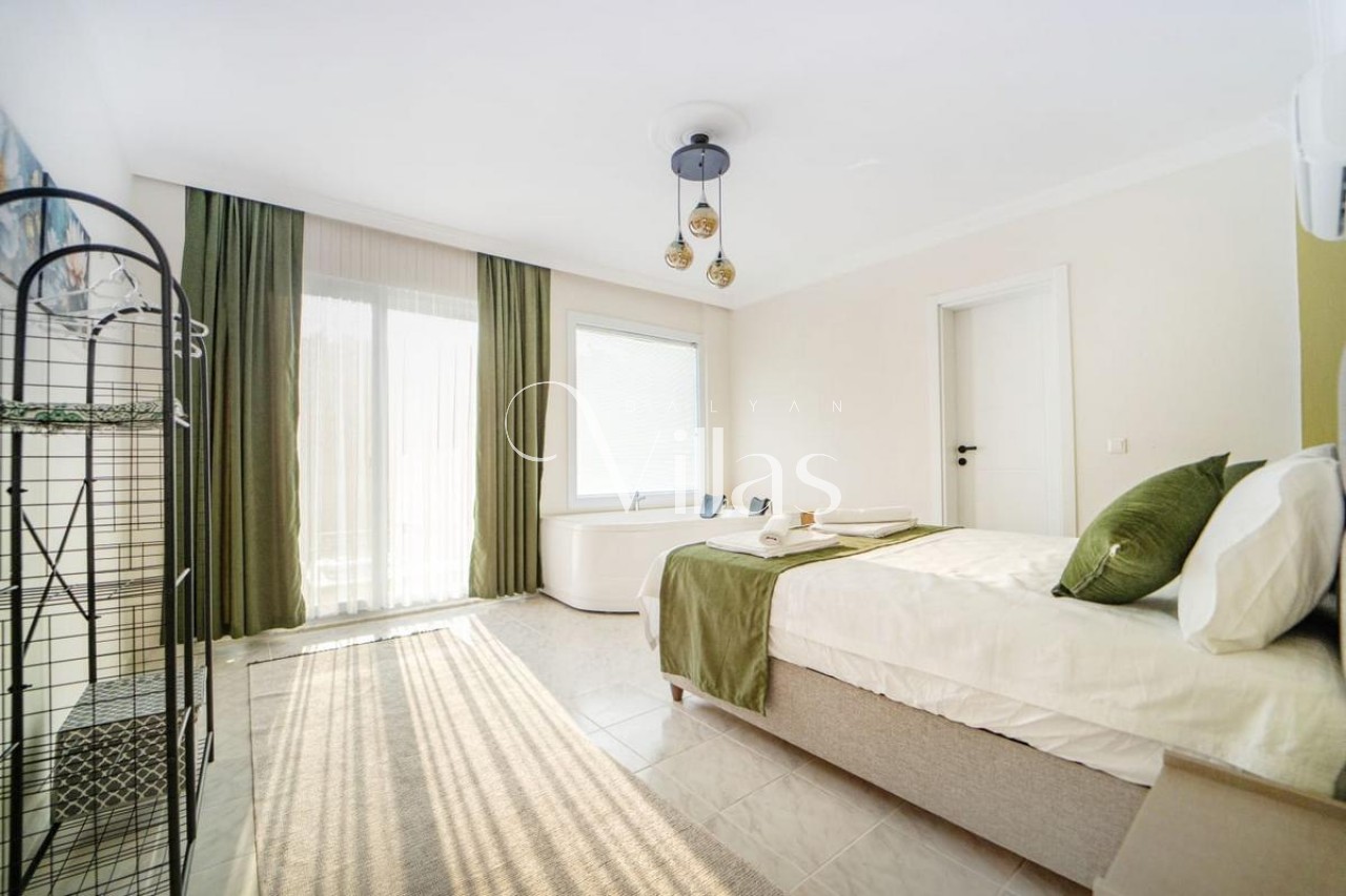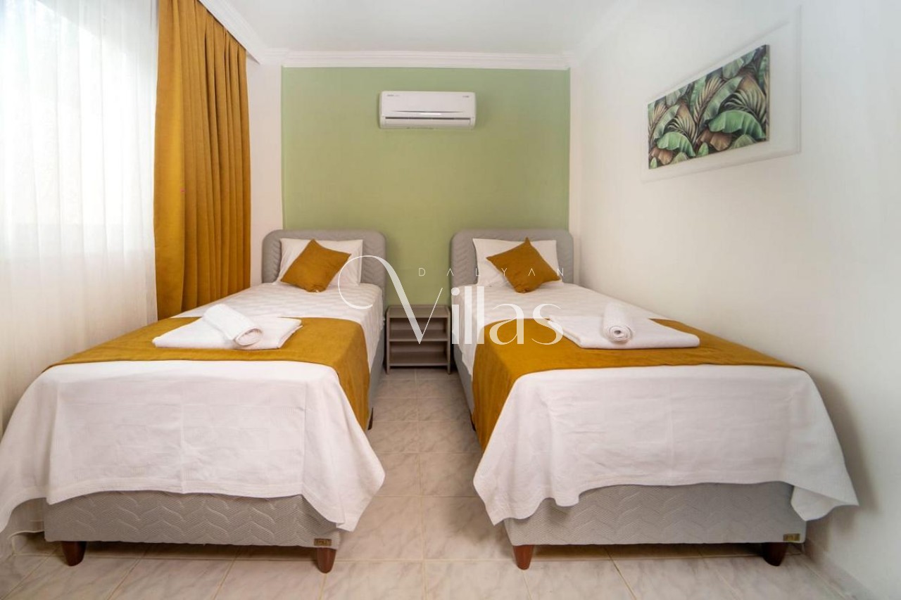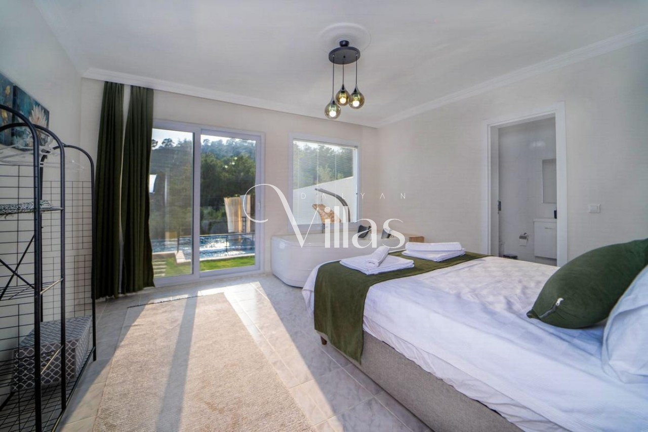 Doğanın içerisinde kargaşadan uzak sakin, güneşin ve havanın doyasıya tadını çıkarabileceğiniz villamız, iç mekan tasarımı ile tatilinize farklı bir hava katmayı planlamaktadır. Havuz terasına açılan ihtiyaçlarınıza karşılık verecek konforlu oturma odası ve tam donanımlı açık mutfağı bulunan villamızın; birinci yatak odasında çift kişilik yatak, jakuzi ve banyo; ikinci yatak odasında çift kişilik yatak ve banyo; üçüncü yatak odasında ise iki tek kişilik yatak ve banyo bulunmaktadır. 🛌🛁💎