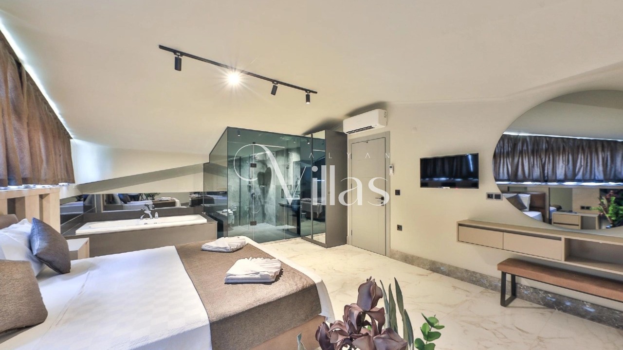 3️⃣ Suit Aile Odası (Çatı Katı) — Çift kişilik yatak, jakuzi, TV, klima, banyo.