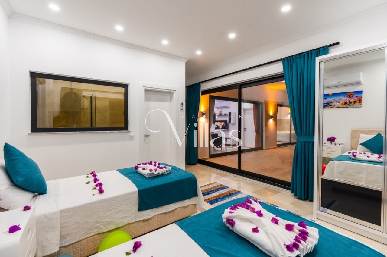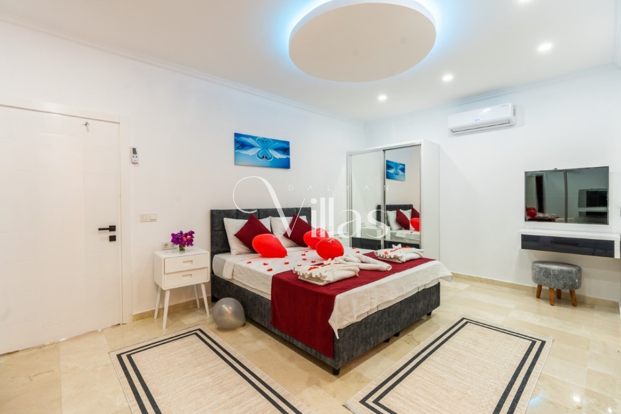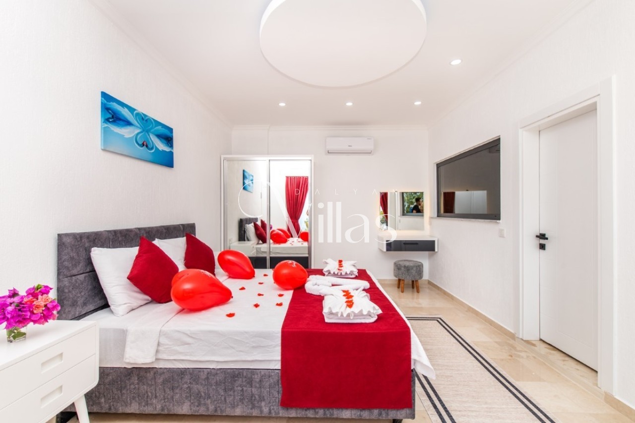 Villamızın her bir detayı, misafirlerimize en üst düzey konforu sunmak için özenle tasarlanmıştır. Şık iç mekanı ve modern dokunuşlarıyla kendinizi evinizde hissettirecek olan villamız, çekirdek aileler ve balayı çiftleri için unutulmaz bir tatil vadetmektedir. 🛌💎