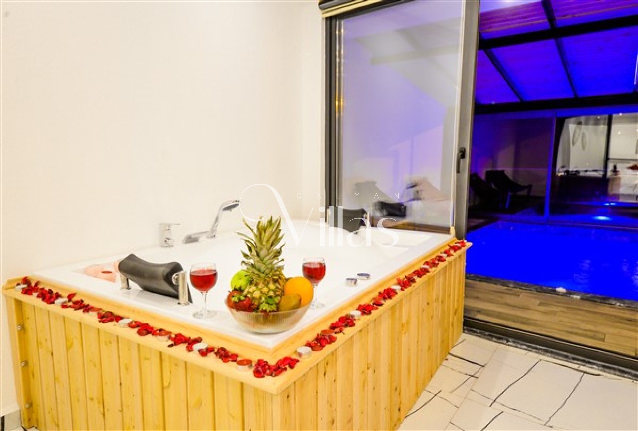 Soğuk havalarda bile havuz keyfinden mahrum kalmak istemeyenler için villamızın kapalı havuzu ideal bir seçenek sunuyor. Keyifli anlarınıza eşlik edecek bu özel donanım, tatil deneyiminize yeni ve sıcak bir boyut kazandıracak. 💧🔥